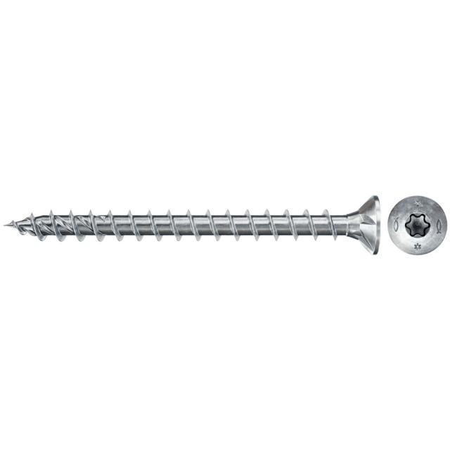 Fischer spånskrue PowerFast FPF II CTF er en elforzinket skrue med undersænket hoved, TX kærv og fuldgevind. Skruen er ideel til fastgørelse af generelle træforbindelser, opklodsning, gesimser, såvel som dør- og metal beslag. Skruen er meget velegnet til fastgørelse af lastbærende emner som fx lamineret træ, blødtræ, hårdttræ og trækonstruktioner samt nylonplugs.